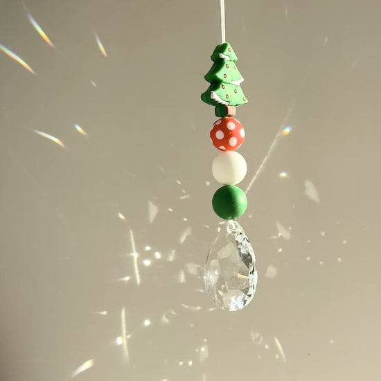 Sonnenfänger DIY Set – 10x Bastelset mit Kristallen, Perlen & Faden - Weihnachts-Edition Tannenbaum